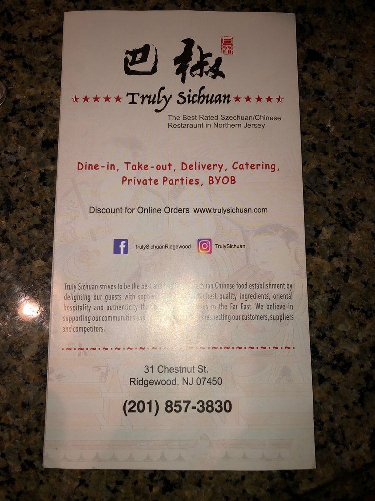 Welcome to Truly Sichuan, a delightful gem nestled in the heart of Ridgewood, NJ, at 31 Chestnut St. This women-owned eatery promises an authentic Sichuan culinary experience that goes beyond your average Chinese restaurant. With an array of unique options on their menu, Truly Sichuan invites food lovers to explore flavors that are both familiar and adventurous.