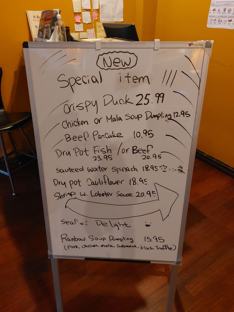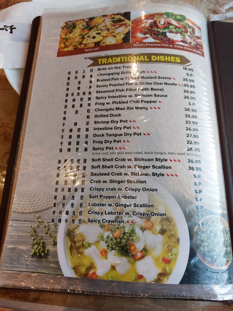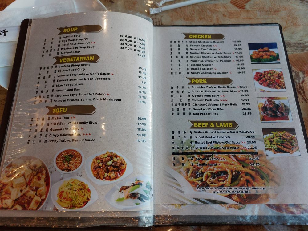 “ Went for a weekend lunch after a long time. We arrived exactly at noon when they open, whole place was empty. The condition of the restaurant was little underwhelming, our table was so wobbly we had shove few napkins and chopsticks under it to stabilize it. The menu looked the same from before. We ordered few of our favorite dishes. Crispy duck was so good with the duck sauce. The fish fillet over spicy soup was favorite dish of the night for e. It had the citrus zest and kick of the Sichuan spice. Soup crab dumplings were super tasty as well. Overall it was a wonderful meal for the whole family. I was pleased to see they were able to maintain the taste and quality of their dishes. ”