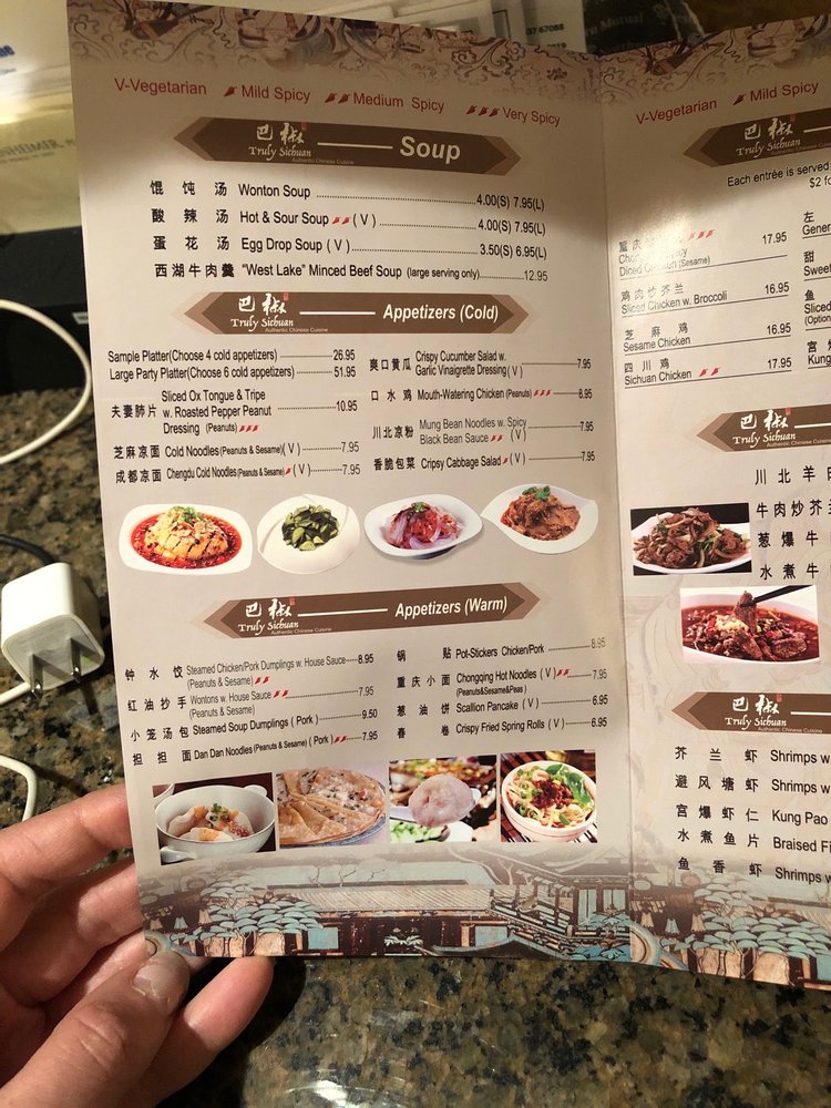 “ Authentic and legitimate Chinese food. As I mentioned in some of my other reviews, there are a few different types of Chinese restaurants in Northern Jersey. There are Americanized Chinese takeout places. These places are usually small and primarily takeout. Their menus are a white tri-fold with red text. They offer orange chicken, kung pao chicken and beef with broccoli. And sometimes sushi, which isn't even Chinese. There are Korean style Chinese places. They are in Palisades Park or Fort Lee, run by Koreans, speak Korean to you, and offer jajangmun (noodles with a meat sauce). Then there are places like Truly Sichuan. They offer real Chinese food. The place is not perfect - the scallion pancake was overdone, the soup dumplings had thick skin. But overall the food has authentic tastes and spices, and everyone enjoyed it. If the restaurant was a little closer to us, we would definitely come back a lot. ”
